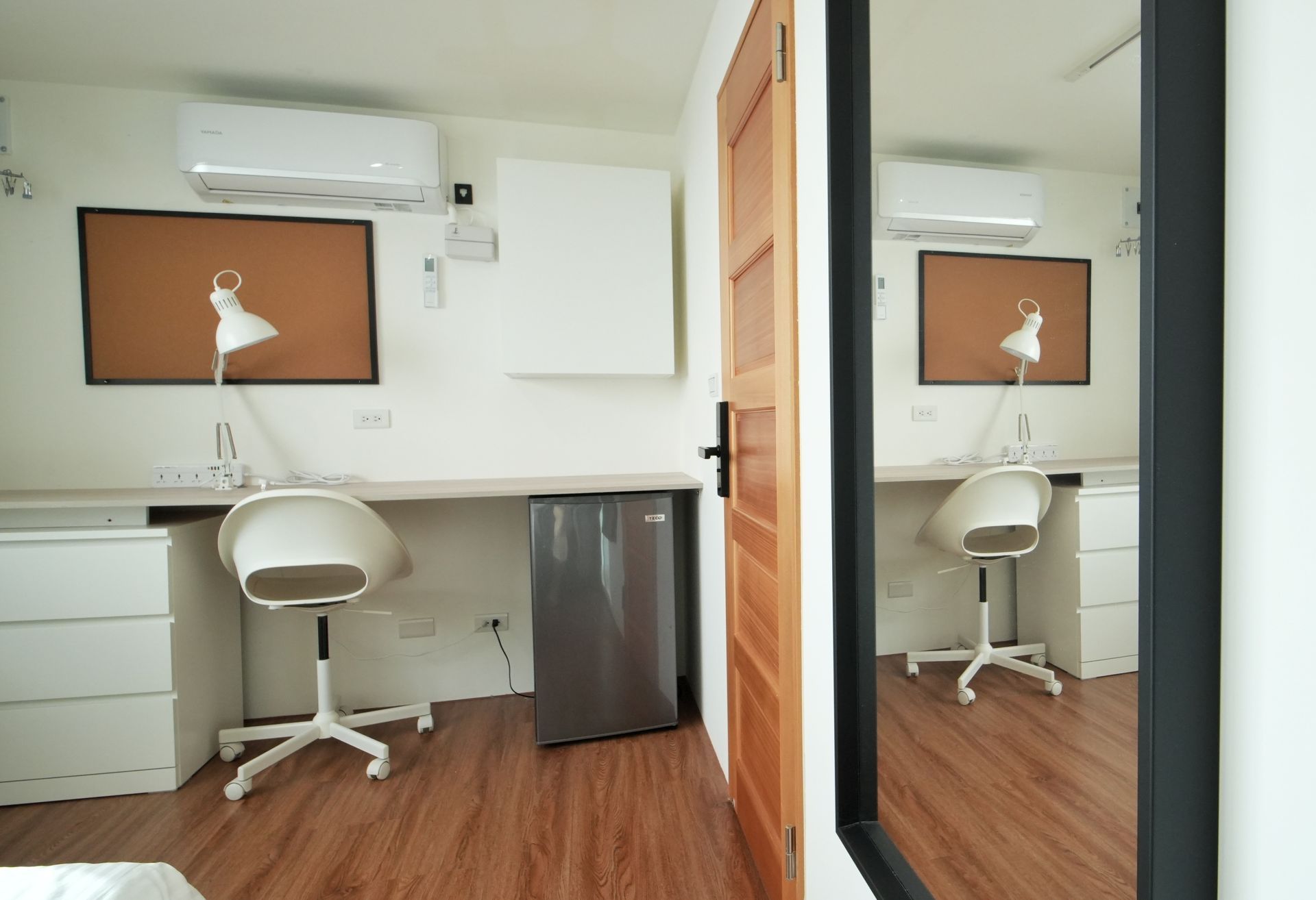 This newly renovated 600 sqm residence boasts 18 rooms on the 6F, and very large common areas on the 7F. It has 2 cinema rooms, a giant living/dining/kitchen room, a really large terrace, 5 toilets, and 6 showers divided between female and mixed genders area. The building has an elevator to the 6F. Internet access is 500 mbs with four Wifi 7 access points.