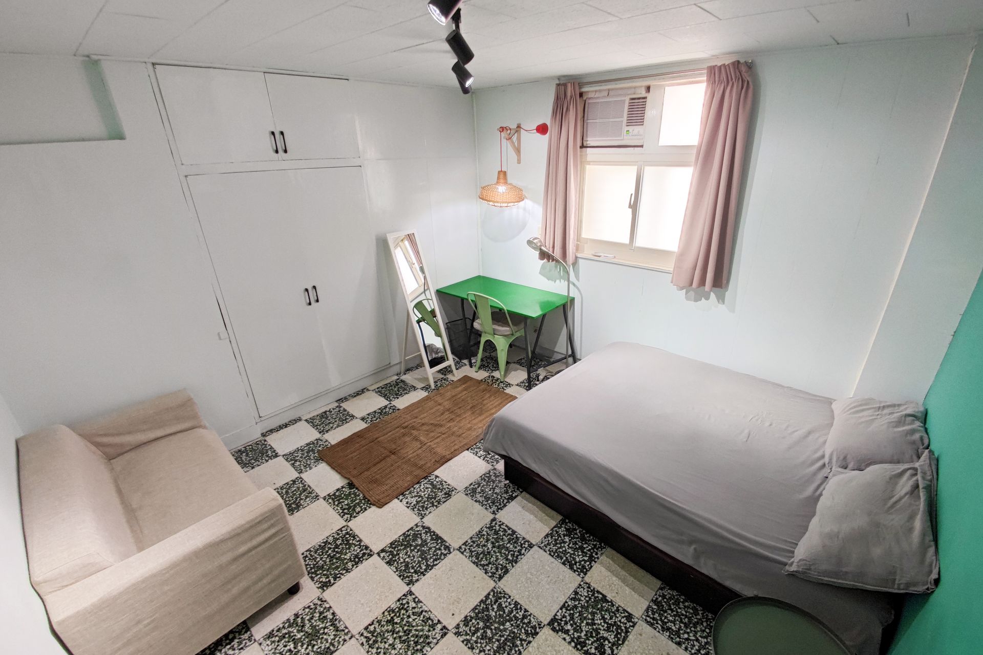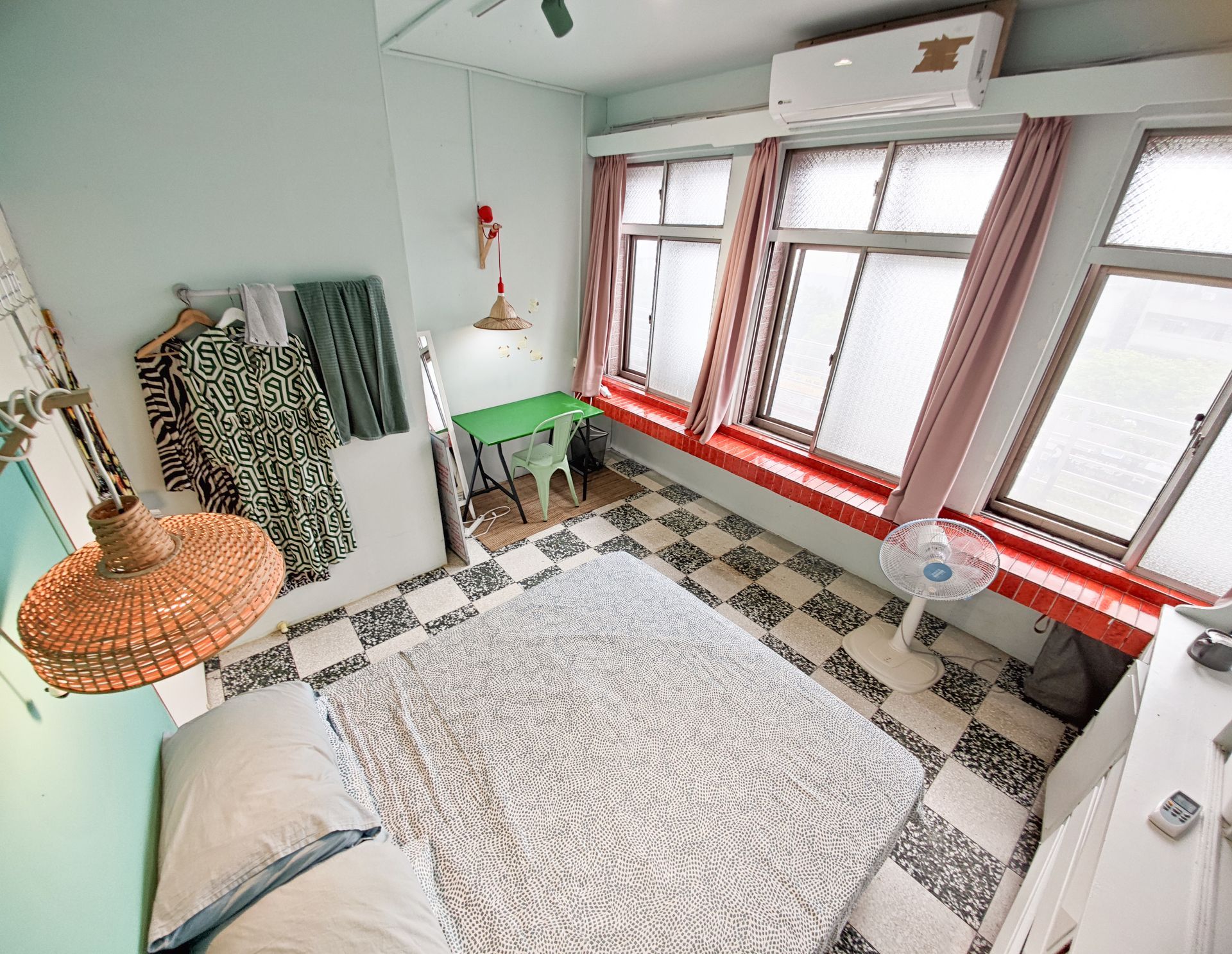This big duplex with a retro-feeling has 8 rooms and 3 shared bathrooms, a giant rooftop, a big dining and living room with a kitchen, and a balcony for the laundry. This is the perfect spot for those wanting to gather with their housemates at the end of the day. The rooftop offers you a nice view of Da'an district and the perfect excuse to gather for a drink.